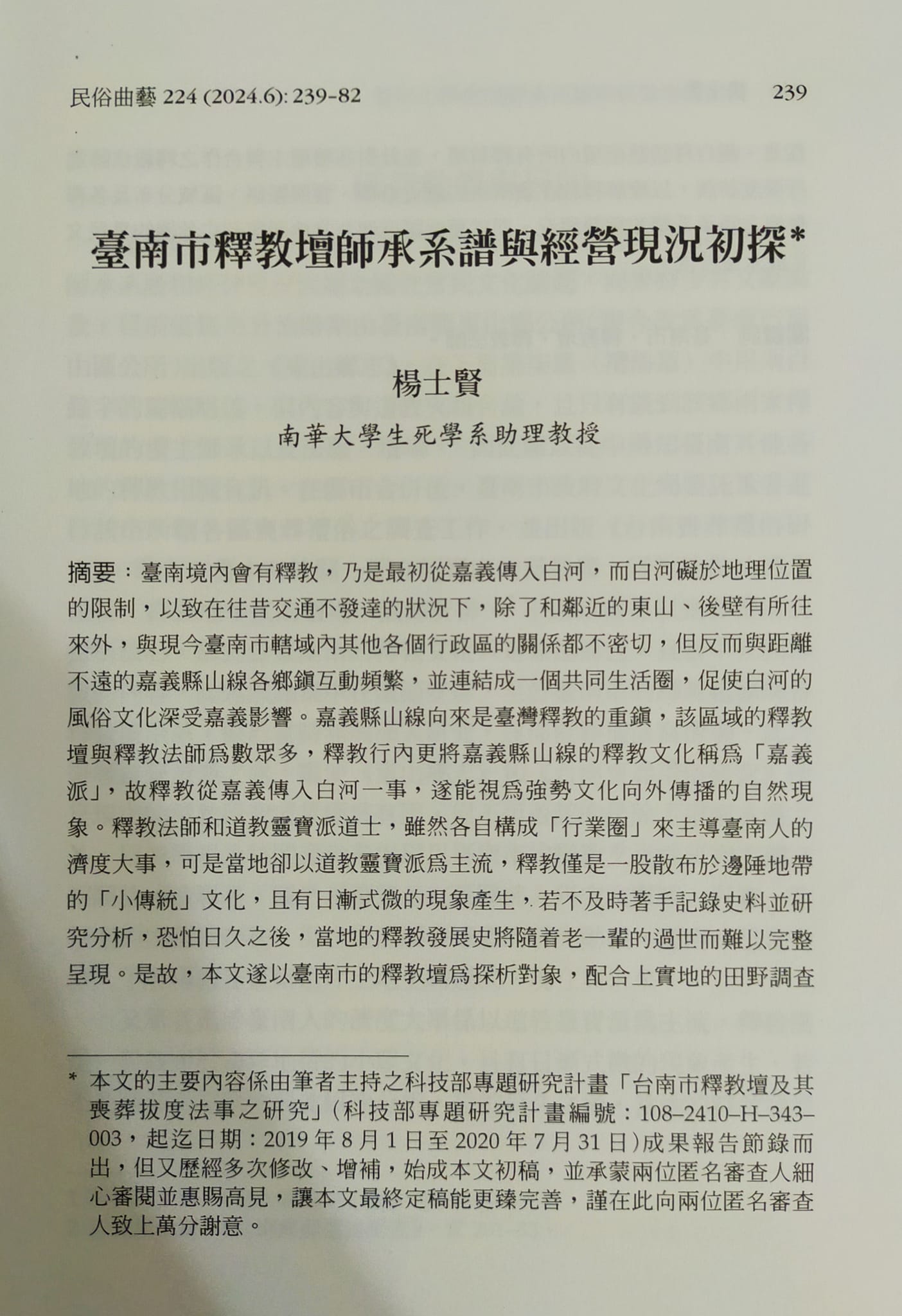 論文名稱(篇名)臺南市釋教壇師承系譜與經營現況初探