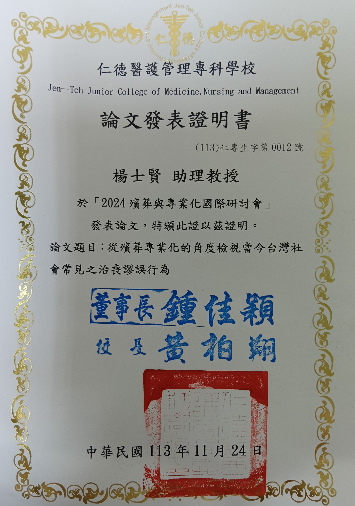 會議名稱2024殯葬與專業化國際研討會