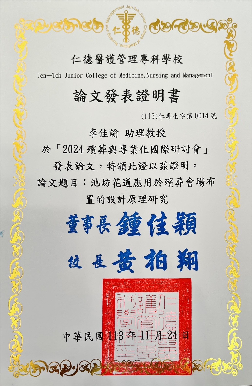 會議名稱2024殯葬與專業化國際研討會