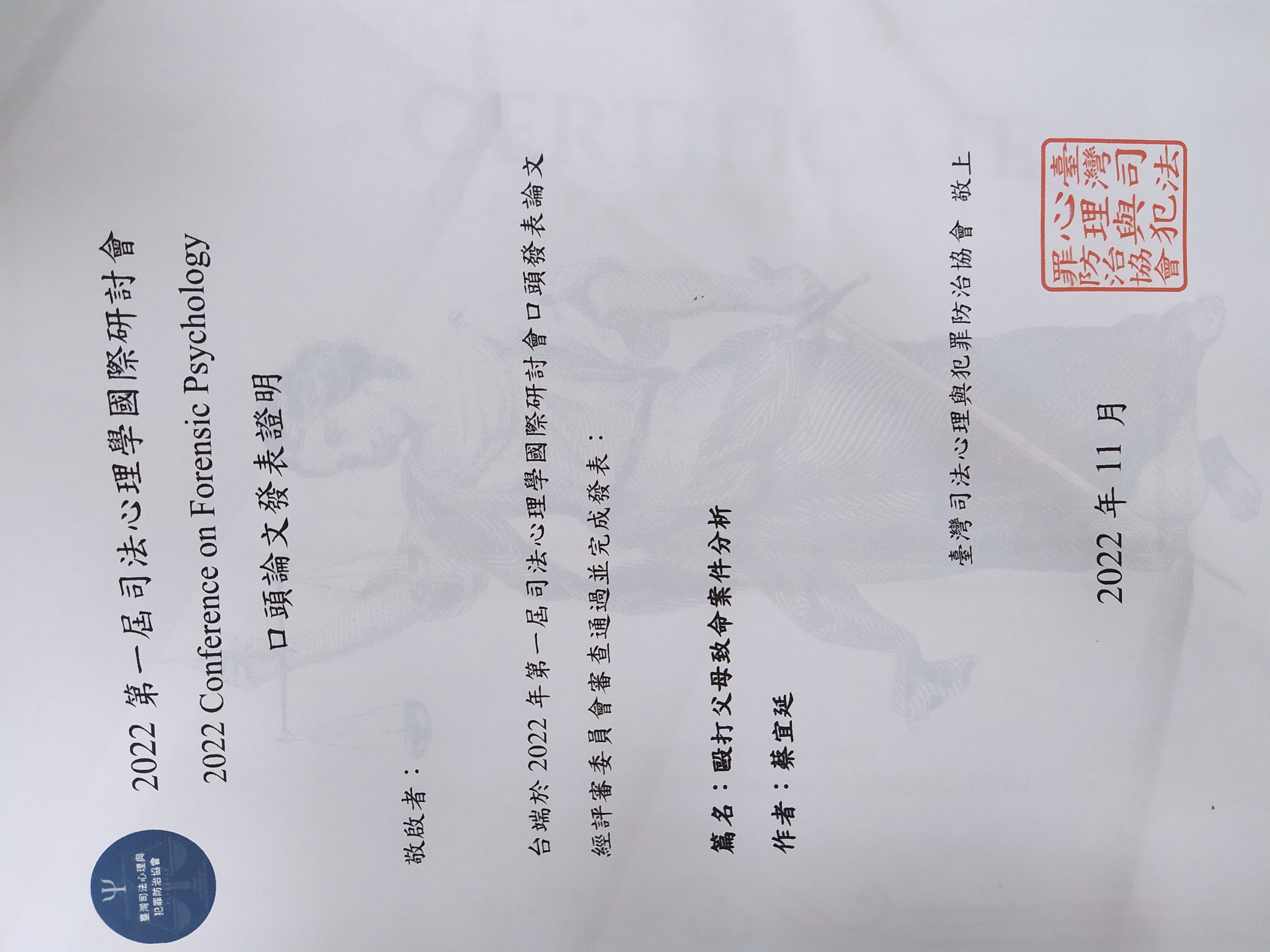 會議名稱2022第一屆司法心理國際研討會